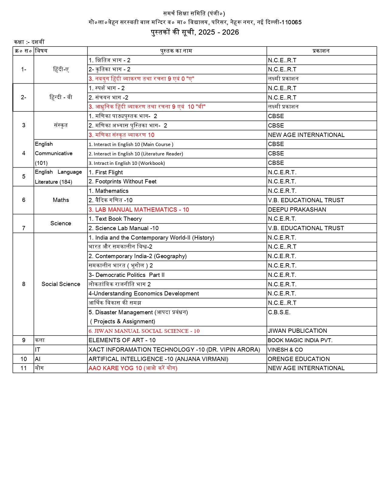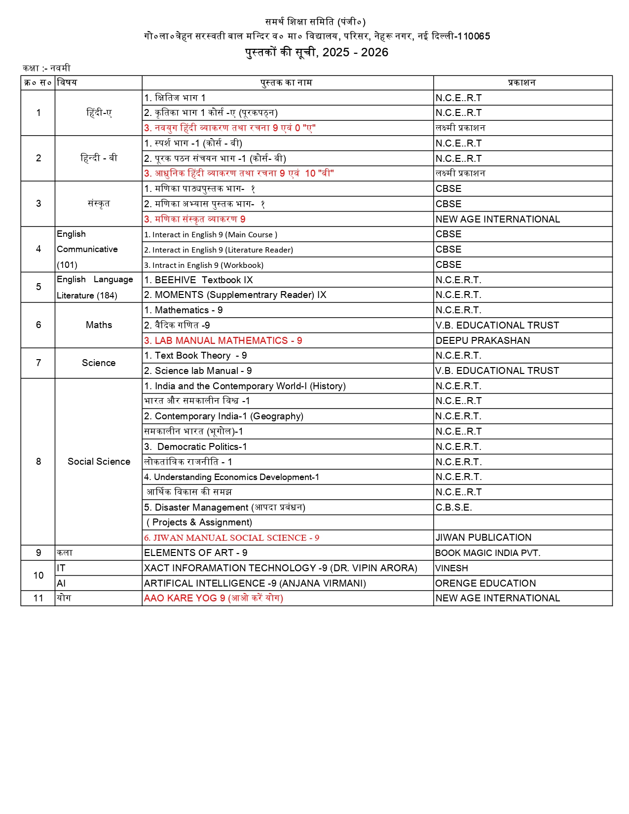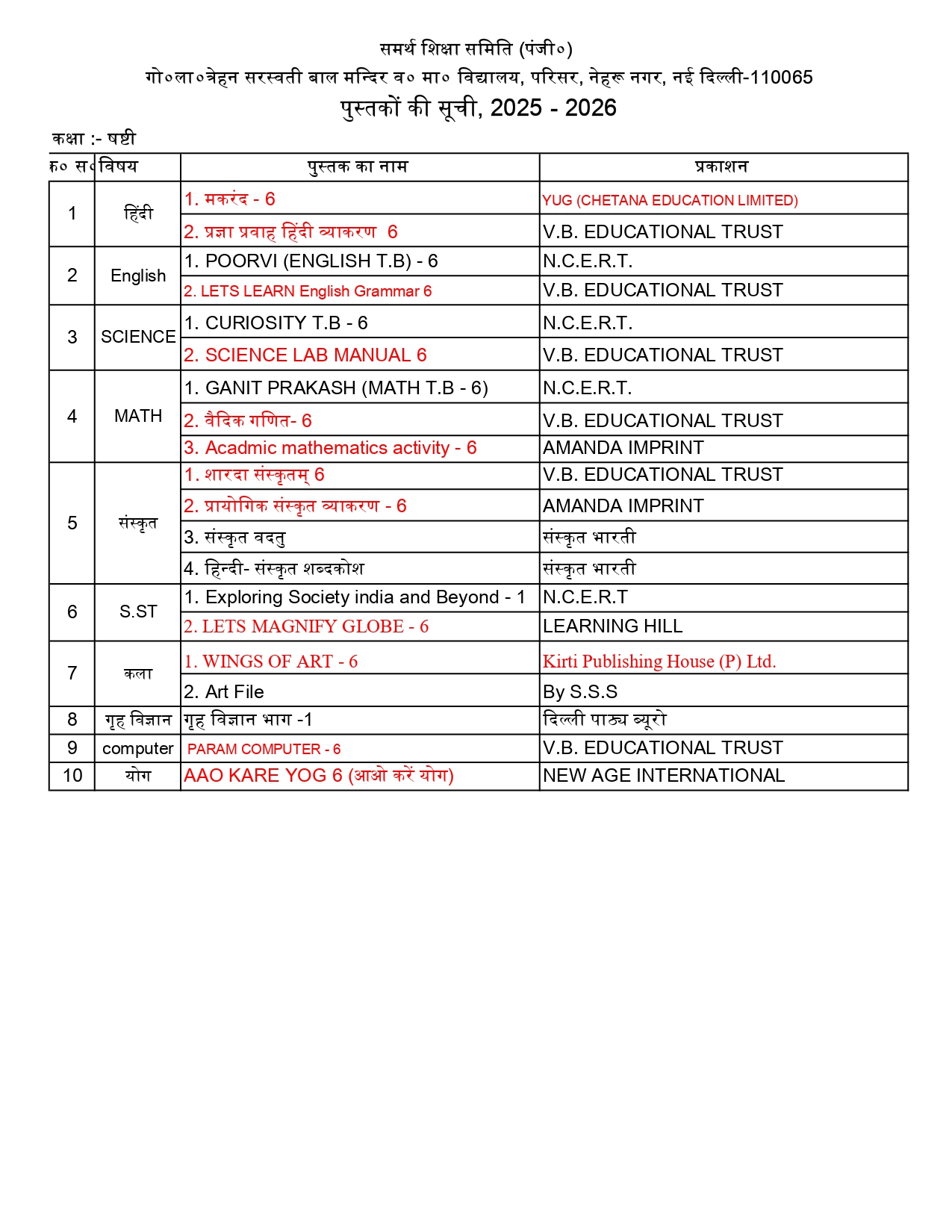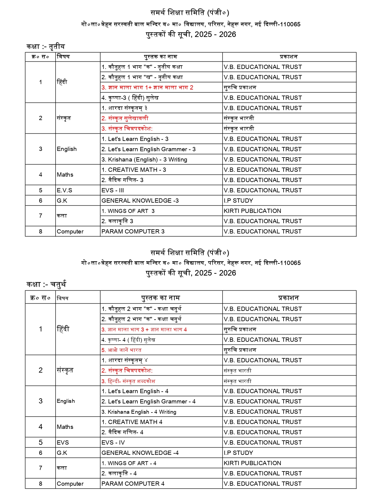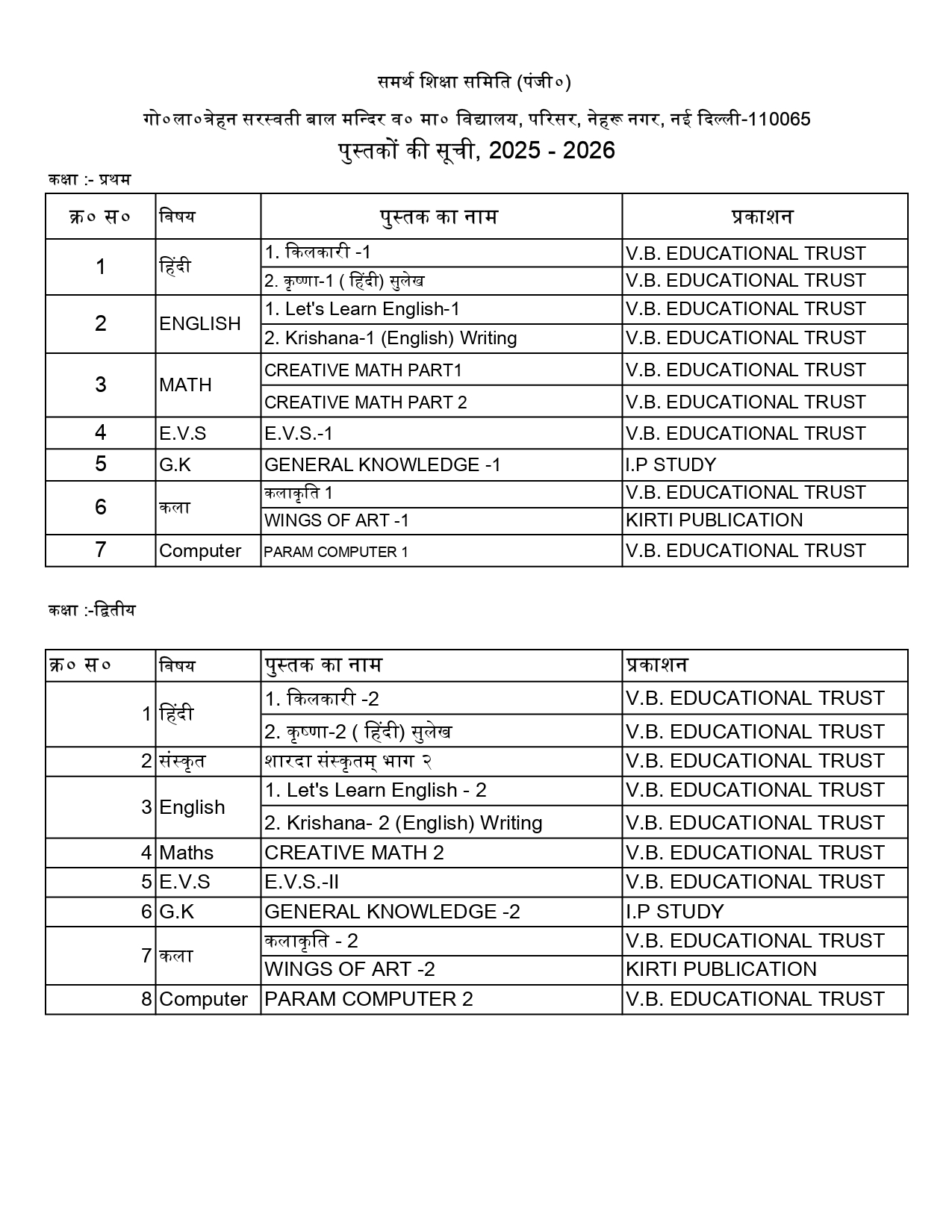 Vidya Bharati Delhi Prant is divided into three subcategories: