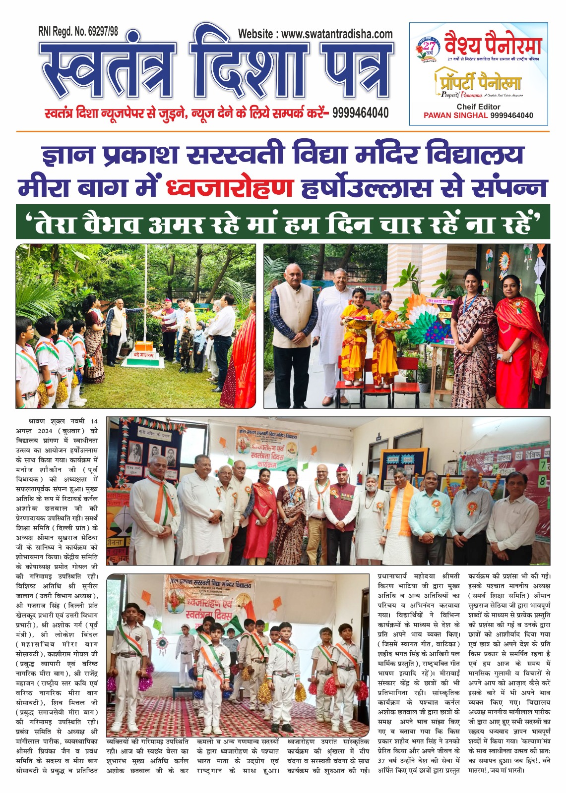 Flag hoisting ceremony at Gyan Prakash Saraswati Vidya Mandir School Meera Bagh.